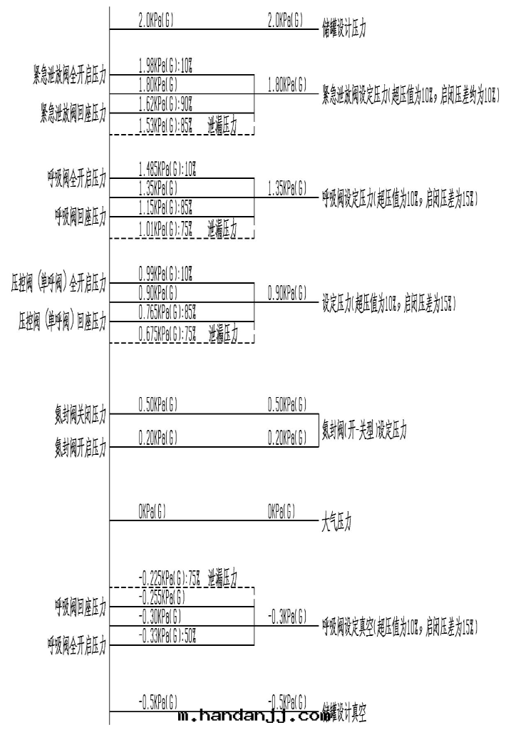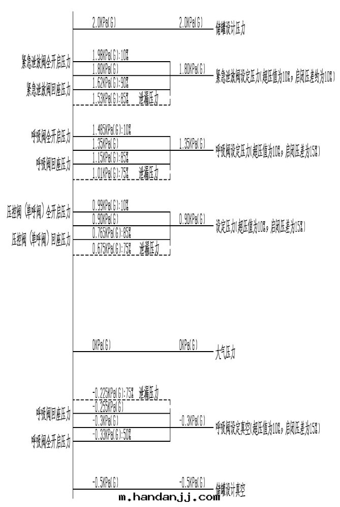 图(tú)2不(bù)带(dài)氮封(fēng)常壓儲罐(guàn)(2.0kPa)各(gè)儲罐(guàn)附件(jiàn)定(dìng)壓值示例