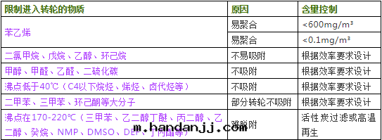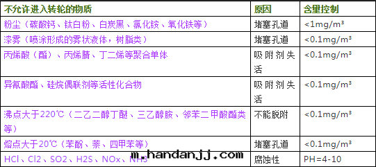 現(xiàn)列出(chū)轉(zhuǎn)轮無法(fǎ)處(chù)理(lǐ)的(de)物質(zhì)成(chéng)分、不(bù)允許進(jìn)入(rù)轉(zhuǎn)轮的(de)物質(zhì)和限制進(jìn)入(rù)轉(zhuǎn)轮的(de)物質(zhì),列表如下: