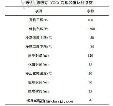 调整後(hòu)VOCs 治理(lǐ)裝(zhuāng)置主(zhǔ)要(yào)運行參數如表3。